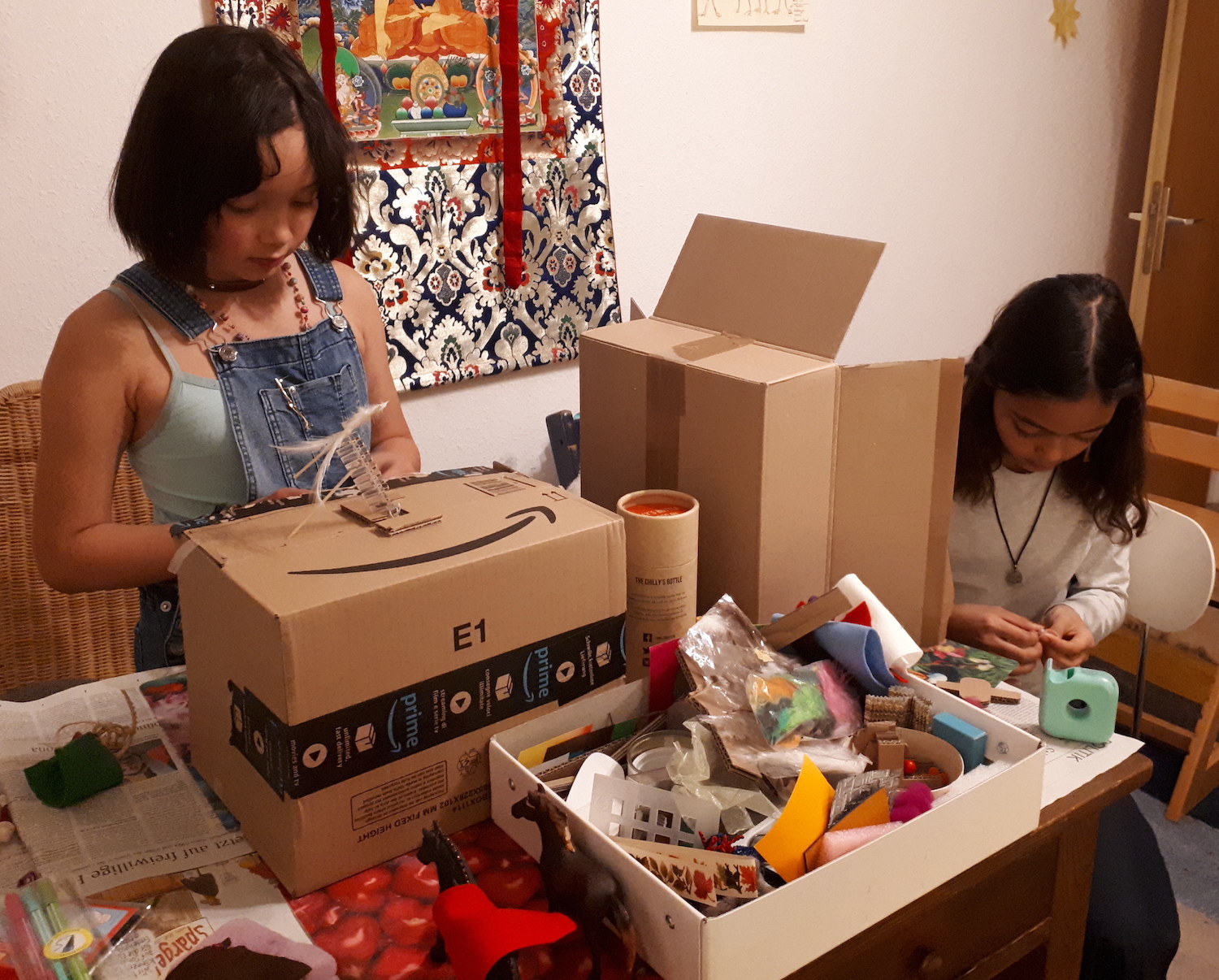 Ellen (4) zeichnet das Paket, den Virus und ihren Oster-Geburtstag